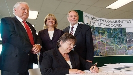 After meetings with Michael Harcourt, the Mayors of Langley Township, Abbotsford, Surrey and Coquitlam signed a “Livability Accord” in October of 2007. Mr. Harcourt was the Chair of the Federal Government’s External Advisory Committee on Cities and Communities. The Committee’s report “From Restless Communities to Resilient Places: Building a Stronger Future for all Canadians” provides advice on major issues affecting Canada’s cities and communities. Mayor Kurt Alberts said “the Livability Accord means working together with our neighbours on common interests. A lot of the issues that we face as a local government do not respect municipal boundaries such as crime/drugs, homelessness, traffic, and public transportation. Each of us as separate municipalities are busy trying to figure out: how to cope with growth pressures; how to build healthy communities; how to provide the necessary facilities and services in a way that is financially acceptable to our taxpayers; and how to get the expensive infrastructure needed in a growing community. The Livability Accord will have us work together on those issues.”